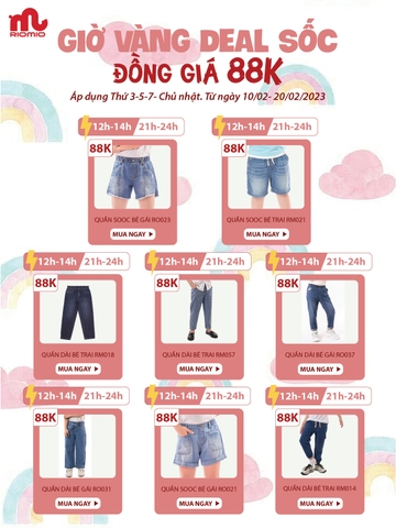 Từ ngày 10/2-20/2/2023, Riomio 𝐬𝐚𝐥𝐞 𝐬ố𝐜 đồ𝐧𝐠 𝐠𝐢á 𝟖𝟖𝐤 cho các sản phẩm outlet