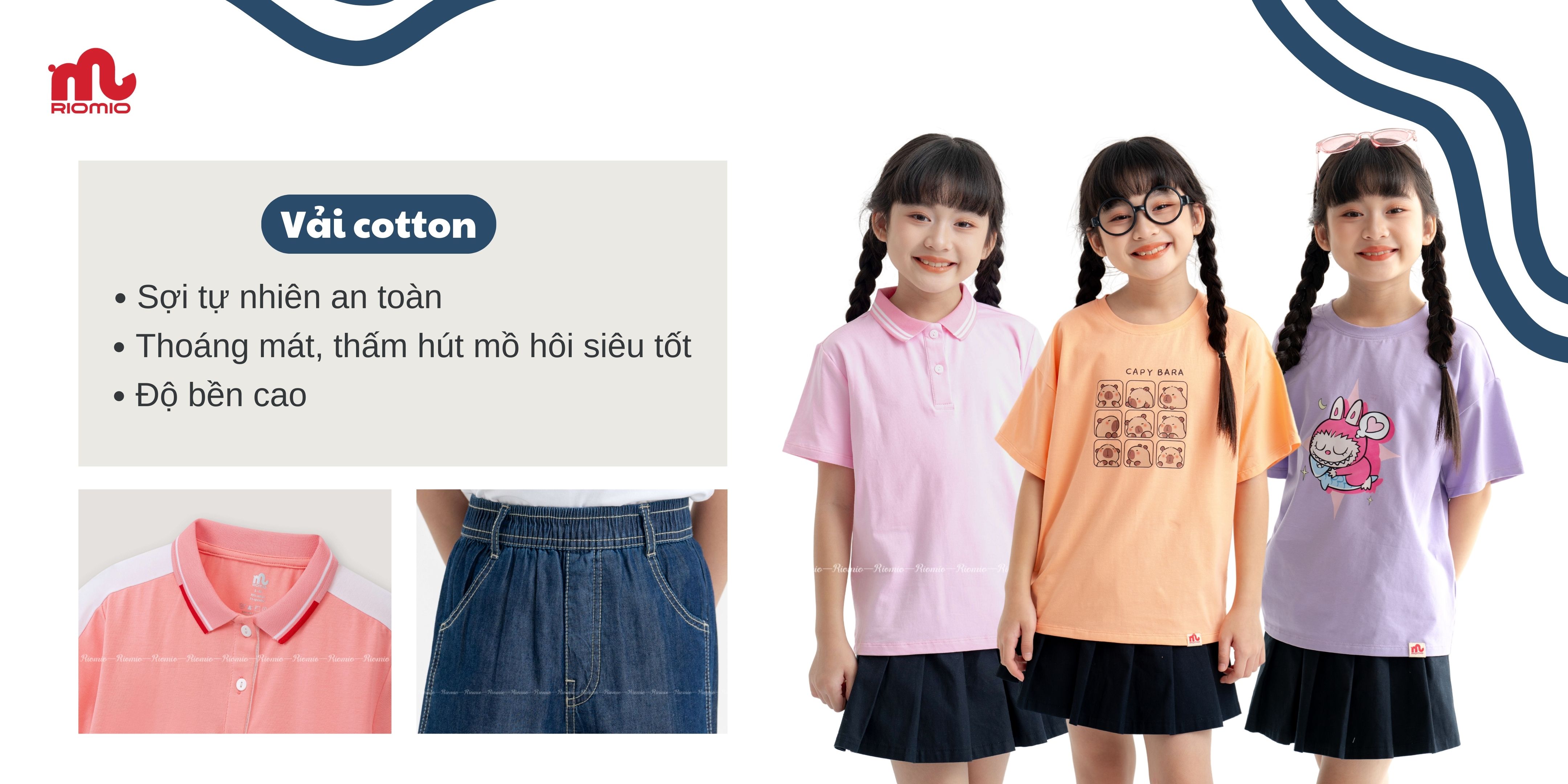 Vải cotton luôn được ưa chuộng trong ngành thời trang trẻ em nhờ vào tính chất tự nhiên và độ mềm mại vượt trội. Đây là loại vải được làm từ sợi bông tự nhiên, rất thân thiện với làn da nhạy cảm của trẻ.