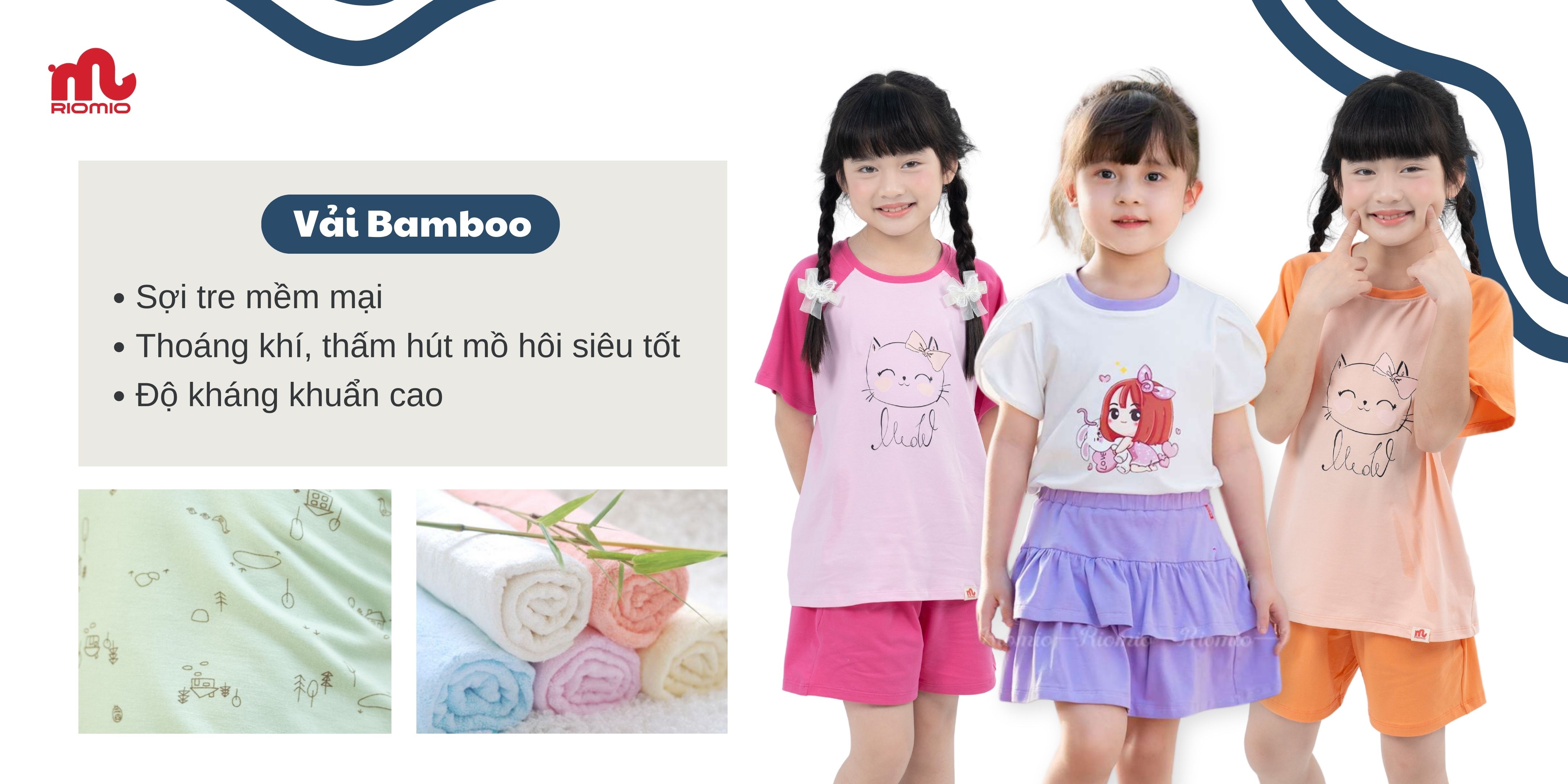 - Vải bamboo, hay còn gọi là vải tre, ngày càng được ưa chuộng nhờ vào đặc tính kháng khuẩn và mềm mại của nó. Được làm từ sợi tre tự nhiên, vải bamboo rất phù hợp cho làn da nhạy cảm của trẻ sơ sinh.