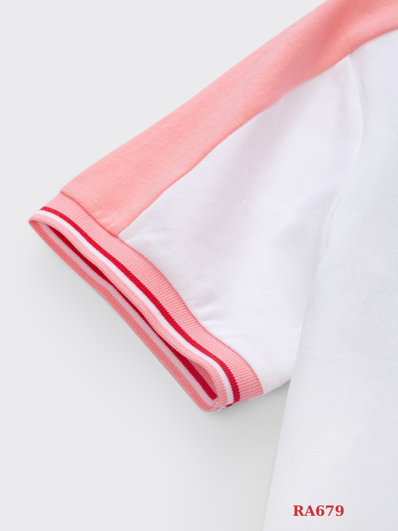 + Thiết kế phối màu vai tinh tế, năng động, bo cổ dệt line ngắn dài bắt mắt.