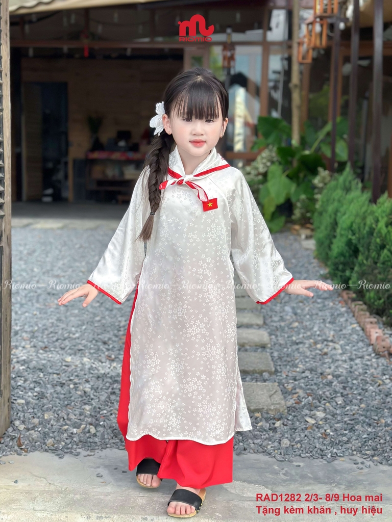 SET ÁO DÀI BÉ GÁI AN YÊN kèm HUY HIỆU CỜ ĐỎ SAO VÀNG & KHĂN QUÀNG CỔ.