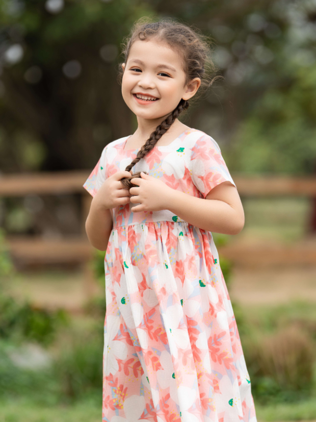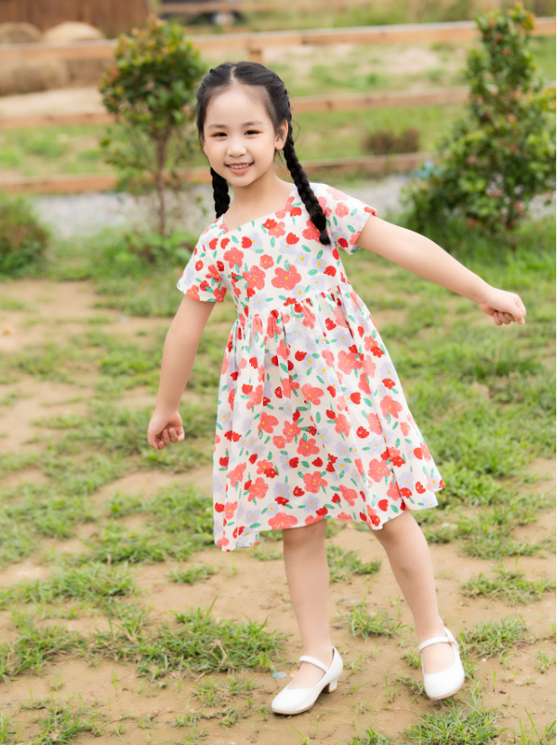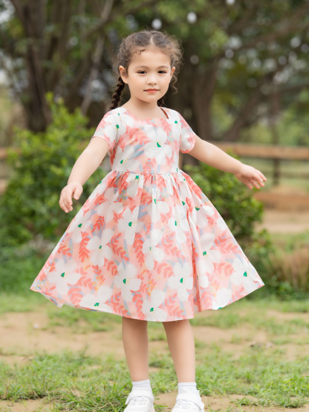 Bé iu của mẹ sẽ thật xinh đẹp khi diện chiếc váy hoa này ạ.